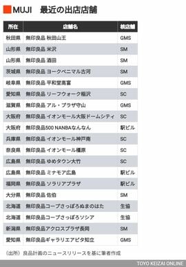 ただ、均一ショップより上の価格帯であるMUJIの出店状況をみると、スリコの今後も想像できる。これまではショッピングモールの定番とされていたMUJIは、最近では出店余地を求めて、総合スーパー、食品スーパー、生協などが核店舗の生活必需品モールにかなり出店している。