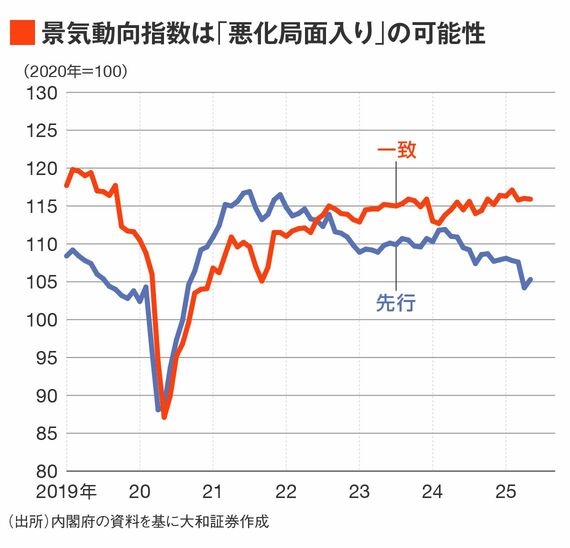 例えば、2025年1~3月期の実質GDP成長率は前期比年率0.2%減となった。4~6月期もマイナス成長となる可能性が指摘されている。