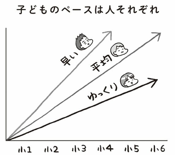 そうすると、その子にとってはゆっくり進んでいくのが適度な成長のペースだった場合には、それよりも早いペースで頑張らせてしまって、子どもに過度の負担をかけることになります。