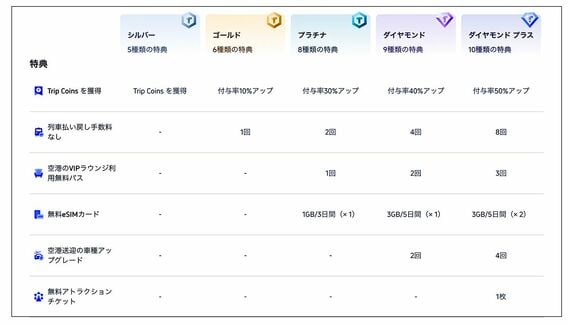 Trip.comのダイヤモンド会員は食事や飲み物が提供される空港ラウンジが年に2回まで無料で利用できたり、海外での通信に必要なeSIMを無料で1回使える特典を受けられる。