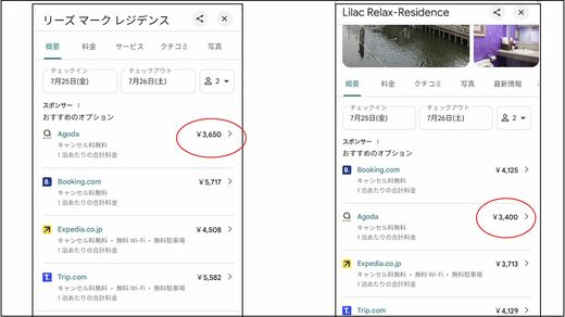 筆者の経験では、国内外の宿泊施設を予約する際に各プラットフォームの価格を比較すると、アゴダが最安値であることが多い。