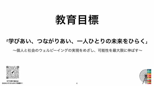 教育目標は「学びあい、つながりあい、一人ひとりの未来をひらく」としており、iPadを積極的に活用した授業を行っている。