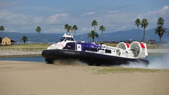 フェリーの3倍の速さで疾走し、陸地まで走れる「ホーバークラフト」。世界で2カ所目、国内唯一の定期便が、2025年7月26日に大分空港~大分市内間で就航する。