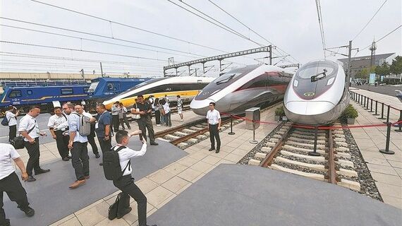 最高速度が時速450キロメートルに達する中国の最新鋭の高速鉄道車両「CR450」が、北京で開催された第12回世界高速鉄道会議の参加者にお披露目された。