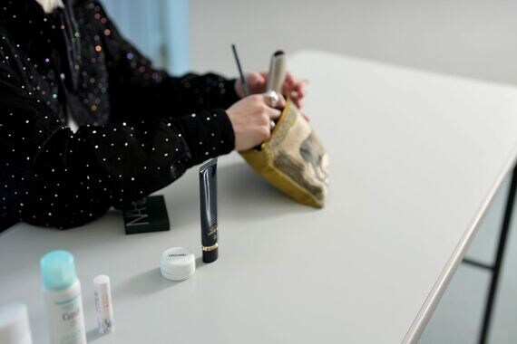 コスメがぱんぱんに入ったポーチを持参してくれた坂口さんに、まず取り入れるべきベースの3つを聞いた。