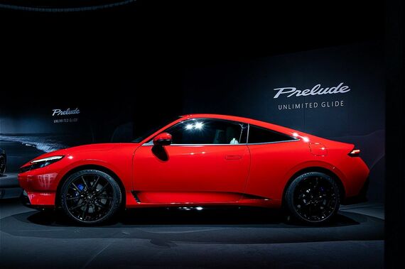 ほかにも、フロントバンパー開口部やリアバンパー下部には、縦へ伸びるブルーのアクセントを採用。各部のエンブレムでは、フロントボンネット先端の「H」マークをブラッククロームカラーとし高級感を演出する。また、テールライト下にはバラ文字の「HONDA」ロゴを採用。かつての名車たちに多かったタイプの復刻だ。さらにリアバンパー中央にある車名「Prelude」のロゴも、4代目のエンブレムをオマージュし現代的なアレンジを加味。これらにより、歴史あるモデルの血統を受け継いでいることも表現している。