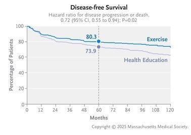 結果は驚異的でした。5年後の運動群の再発や新たながんの発症リスクは28%、8年後の相対的な死亡リスクは37%も低下したのです(※外部配信先ではグラフを閲覧できない場合があります。その際は東洋経済オンライン内でお読みください)。