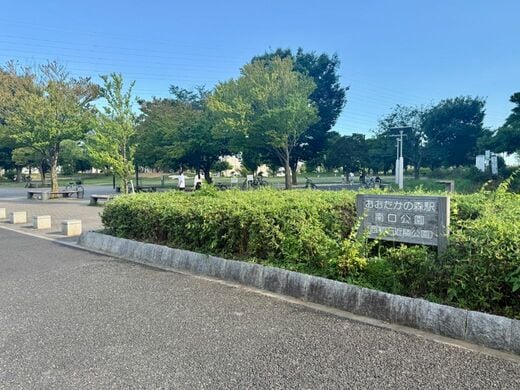 「おおたかの森駅南口公園」。豊かな緑の中で、子どもたちの楽しそうな声が響いていた(筆者撮影)