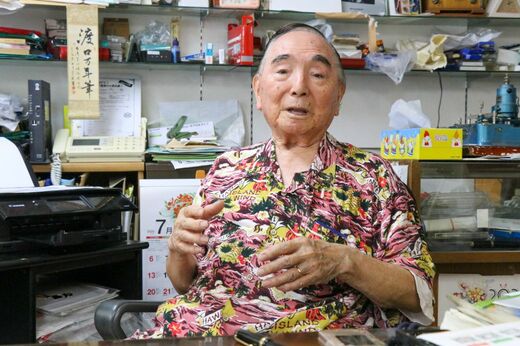 「日傘はね、平和のシンボルなんですよ」。現在87歳の渡口さんは、沖縄戦の経験者だ。「サマーシーズンにはビーチパラソルが立っている。マーケットに行けばマーケットパラソルがあるさ? 日傘を持って公園に行くこともできる。そんなことは、戦(いくさ)になるととんでもないよ。平和だからできるんだよ」