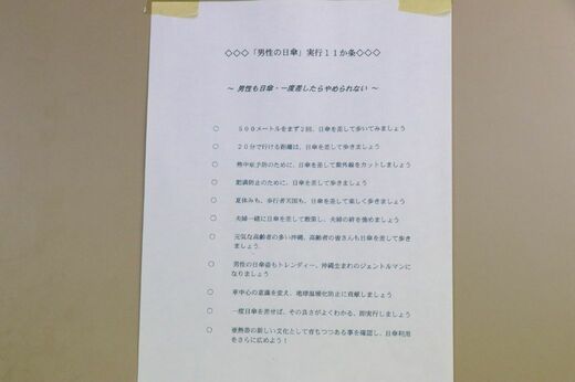 こうして日傘を差し続けていた渡口さんが、全国に先駆けて日傘の普及活動を始めたのは2006年。「沖縄日傘愛好会」を発足させて、会長に就任。以下のような「『男性の日傘』実行11か条」を制定した。制定当時からその思いに一点の陰りも無いかのように、今も渡口万年筆店にはこの11か条が貼られている。