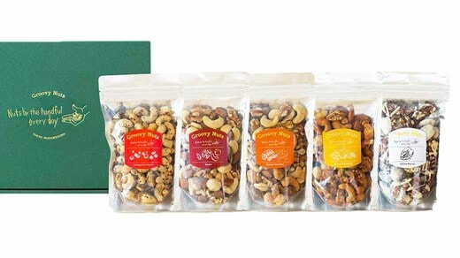 美容や健康を気づかう女性にも、お酒を楽しむ男性にも。どちらにも喜ばれる夏の手土産としておすすめなのが、ナッツ専門店「Groovy Nuts」のフレーバーナッツです。燻製の香りや甘いコーティングなど、素材の魅力を引き出した多彩な味わいが魅力です。