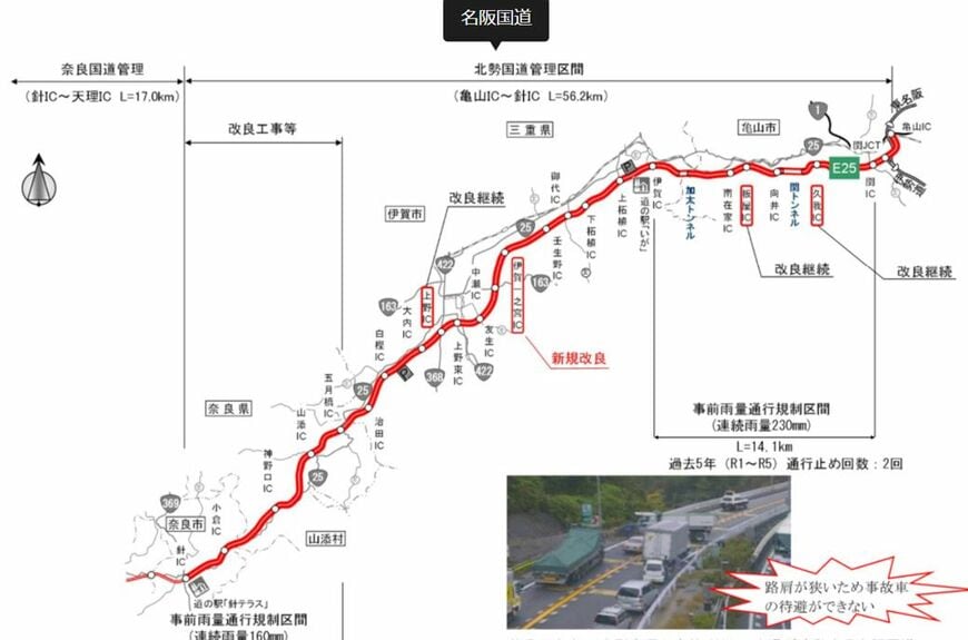 もともと奈良県の反対で「規格を落として無料化」の名阪国道ができたのだから、今言われましても……と言いたくはなるが、無料であるがゆえに生活道路のように使われていることから沿線自治体の反対も根強く、実現はかなり難しそうな様子だ。