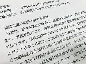 重要事象の後には、さらに次の一文が続く。「予め当該状況に対応する事を目的に、2024年7月26日親会社である株式会社東邦銀行と野村證券株式会社とによる金融商品仲介業務における包括的業務提携に関して三社間で最終契約を締結しております」。とうほう証券の経営不振が一因となり、野村証券との提携を決めたという。