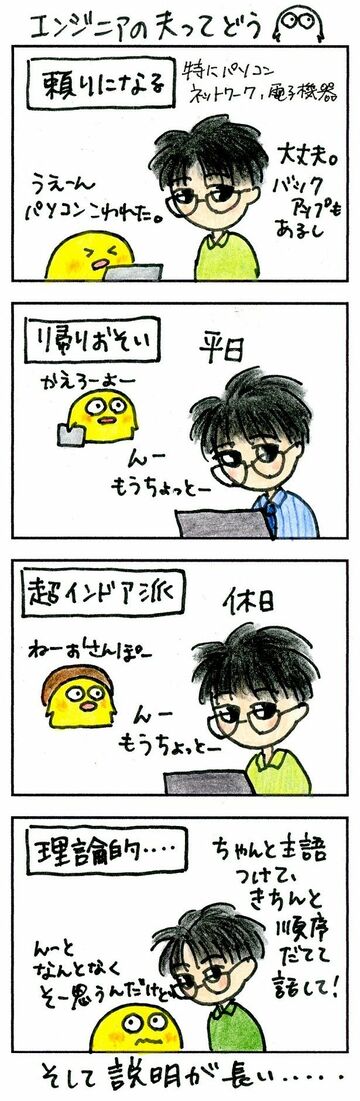 ぼへちゃんは夫婦そろって、エンジニアです。そのため、たまに「エンジニアのだんなさんとの生活はどうなんですか」と聞かれます。