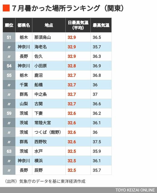 ライフ 2位熊谷の35度を上回ったところは?異常な暑さの夏、その中でも特に気温が高かったのはここだ!(関東) 2分で読める 公開日時:2025/08/14 05:00 東洋経済オンライン編集部 フォロー 1/4 PAGES 2/4 PAGES 3/4 PAGES 4/4 PAGES 51~63位は? 関連記事:酷暑でも「涼しい場所」ランキングTOP63(関東)