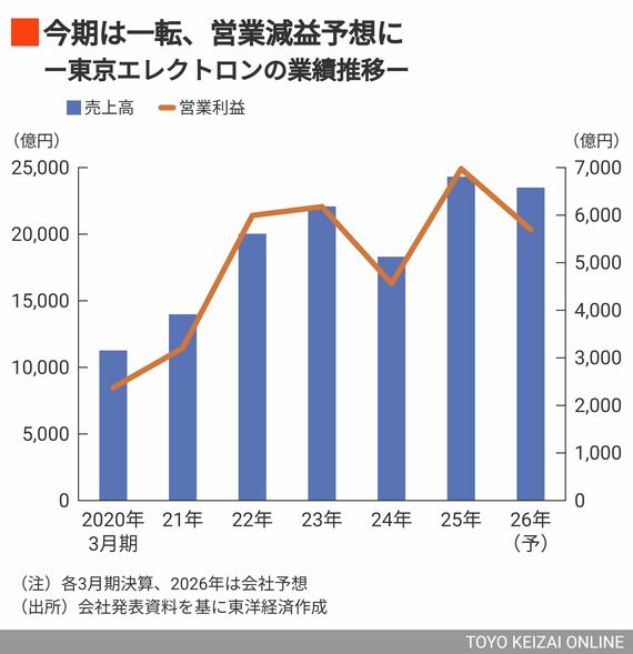 もう1つは中国メーカーからの受注の落ち込みだ。東京エレクトロンにとって中国は最大市場。2024年度には売上高の4割を占めていた。