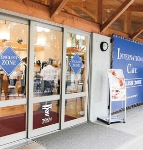 湘南キャンパス内のドトールコーヒーが「インターナショナルカフェ」としてリニューアルオープンしました。店舗周辺の敷地まで含め「イングリッシュゾーン」に設定し、留学生、日本人学生、近隣住民が英語で自由に交流する拠点を作ることが目的。年々増加する留学生へのサポートを充実させることを目指しています。店内のメニューや掲示物はすべて英語で、注文もすべて英語だけで応じます。さらに国際交流イベントも開くなど、留学生と日本人学生が日常的に交流できる取り組みを計画しています。