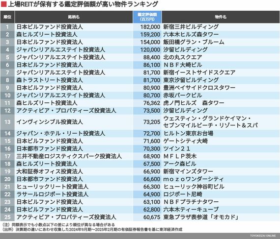 上場REITが保有する鑑定評価額が高い物件TOP200 優良物件をたくさん持つREITはどこか?