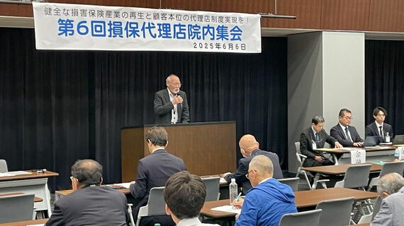 通常国会の会期末が迫った今年6月6日。東京・永田町の参議院議員会館で開かれた「損保代理店院内集会」では、自民党や立憲民主党、共産党の国会議員が次々とマイクを握り、そう言って気炎を上げていた(上写真)。