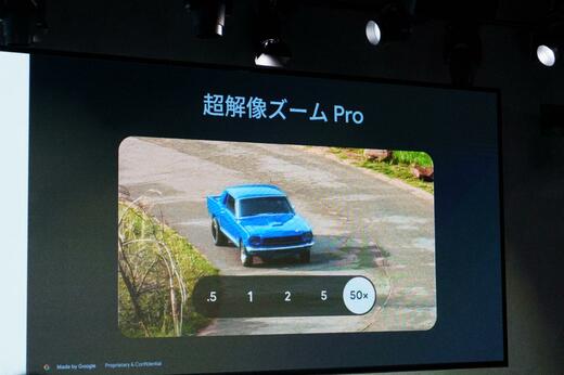 Proモデルはさらに進化している。5000万画素の広角カメラは手ぶれ補正の効果範囲を2倍に拡大した。4800万画素の望遠カメラは100倍ズーム対応の「超解像ズーム Pro」を搭載している。この機能はPixelカメラ初の拡散モデル(生成AIによる画像補完技術)を使い、遠距離被写体の詳細をAIが復元・再構成する。