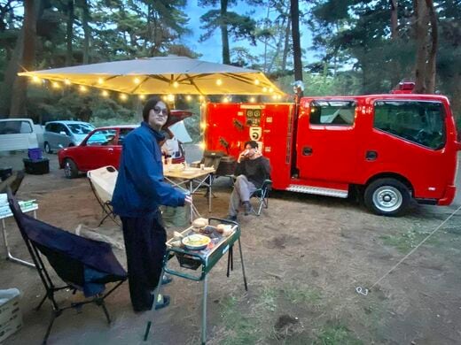 たくさん荷物が積めるので、家族や友人との旅行やキャンプでも大活躍だ。また、勤め先の新入社員歓迎会では、うつみさんが消防車で会社から飲食店まで新入社員を送迎するのが「目玉」になっている。