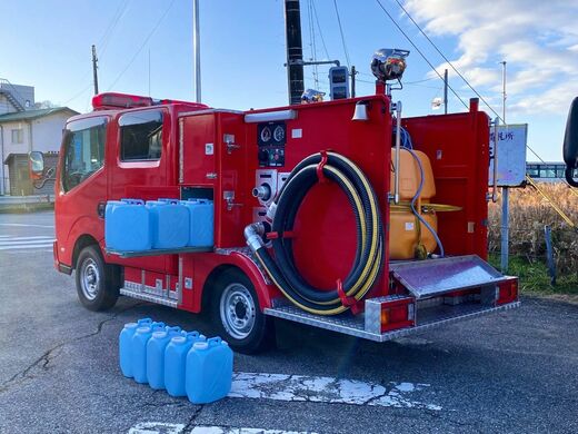 「消防車は『働くための車』ですからラフに扱えるし、傷がつくのも気になりません。能登半島地震のときには、名古屋市上下水道局緑営業所にお願いして生活用水を分けていただき、11時間かけて運びました。消防車の高圧ポンプを外したおかげで、たくさんの荷物を積んで運搬できるんです」