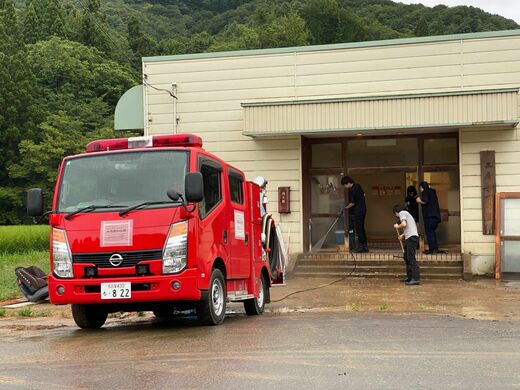 うつみさんは静岡市清水区(2022年9月)を皮切りに、自然災害で被害を受けた秋田県五城目町(2023年7月)、石川県能登町(2024年1月)、山形県鮭川村(2024年8月)でボランティアをしてきた。消防車で向かい、支援物資や生活用水の配布、使えなくなった家財道具の運搬、泥のかき出しなどを行ったという。
