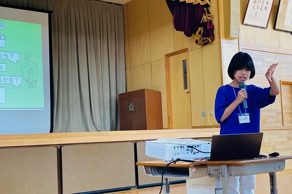 続いて、この日のために東京からやってきた都内公立小6年生の児童を紹介。小泉氏の前任校に在籍するこの児童は、堂々とした様子で、自身が現在進めているプロジェクト「COCORO」について発表した。友達や先生にも相談しづらい悩みを匿名で相談でき、子どものための安全な居場所づくりを目的としたアプリの開発を進めているという。