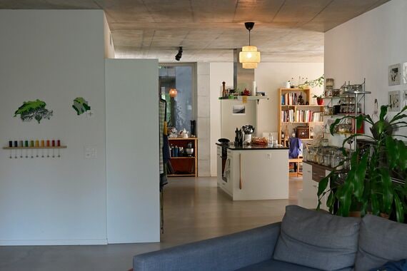チューリヒの建築士、モリッツ・ケーラーさんはこの開発プロジェクトにある6戸のクラスターフラットの一つに注目している。それぞれ最大12人が暮らす想定で設計されている。