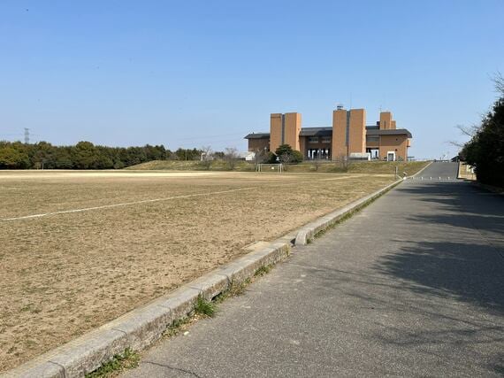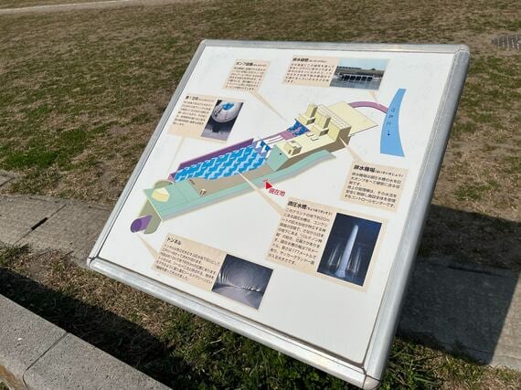 最寄り駅は、春日部駅から2つ目、東武アーバンパークラインの南桜井駅。歩いて江戸川の河畔に近づいていくと、大きな多目的広場があり、その先に「庄和排水機場」の巨大な建物が見えます。