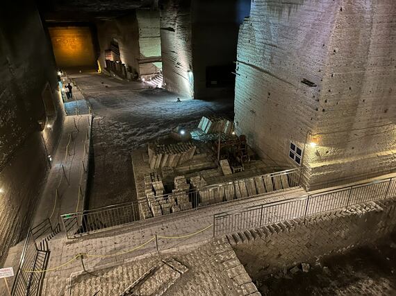 地下空間へは、現在も入場することができます。大谷石の採掘の歴史などが展示されている資料館につづき、階段を下りて深さ30メートルの採石場跡へ。