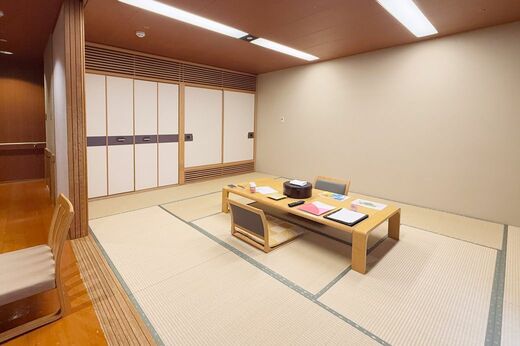 客室は和室で12畳2人で泊まるには十分すぎる広さです。中央には座卓と座椅子、2畳ほどの縁側にはテーブルと椅子もあります。