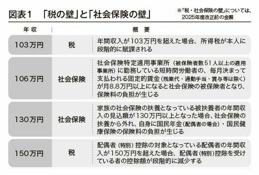 「年収の壁」を見直した今回の所得税法改正を理解するため、前提となる「税の壁」と「社会保険の壁」について確認しておきましょう(図表1)。