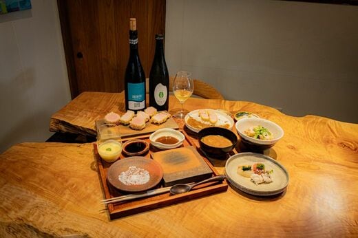 メニュー内容は、清水さんが手がける前菜、5銘柄5部位を1貫ずつ提供するとんかつ、お代わり自由のキャベツ、白飯、赤味噌豚汁、締めのカツ丼かカツカレー、小さなデザートだ。