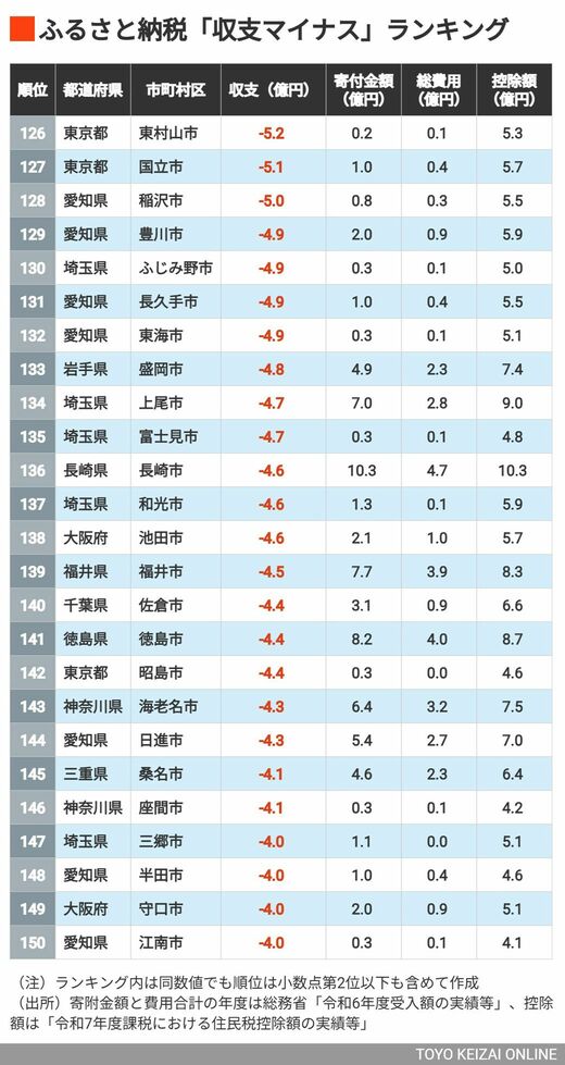 ライフ ふるさと納税「収支マイナス」自治体ランキング 9月で終了のふるさと納税ポイント還元『2024年度トップの横浜市は327億円の流出』 2分で読める 公開日時:2025/09/20 05:15 田中 久貴 東洋経済データ事業局 フォロー 1/9 PAGES 2/9 PAGES 3/9 PAGES 4/9 PAGES 5/9 PAGES 6/9 PAGES 7/9 PAGES 126~150位は? 次ページが続きます:【151~175位は?】 8/9 PAGES 9/9 PAGES