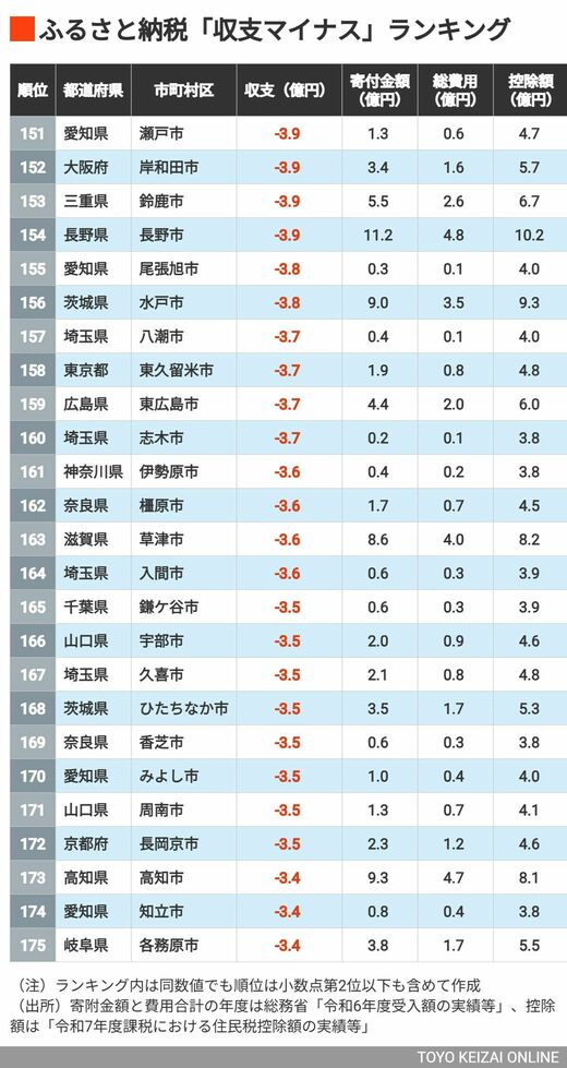 ライフ ふるさと納税「収支マイナス」自治体ランキング 9月で終了のふるさと納税ポイント還元『2024年度トップの横浜市は327億円の流出』 2分で読める 公開日時:2025/09/20 05:15 田中 久貴 東洋経済データ事業局 フォロー 1/9 PAGES 2/9 PAGES 3/9 PAGES 4/9 PAGES 5/9 PAGES 6/9 PAGES 7/9 PAGES 8/9 PAGES 151~175位は? 次ページが続きます:【176~200位は?】 9/9 PAGES
