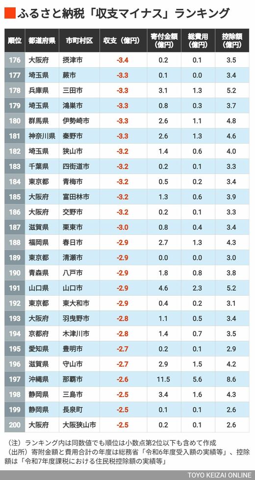 ライフ ふるさと納税「収支マイナス」自治体ランキング 9月で終了のふるさと納税ポイント還元『2024年度トップの横浜市は327億円の流出』 2分で読める 公開日時:2025/09/20 05:15 田中 久貴 東洋経済データ事業局 フォロー 1/9 PAGES 2/9 PAGES 3/9 PAGES 4/9 PAGES 5/9 PAGES 6/9 PAGES 7/9 PAGES 8/9 PAGES 9/9 PAGES 176~200位は? 201位以降のランキングは、「《完全版》ふるさと納税「収支マイナス」自治体400」(有料会員登録が必要です)でご覧いただけます。