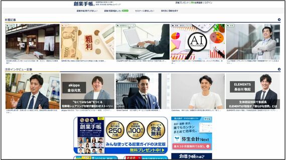 創業手帳は2014年に大久保幸世氏が創業したスタートアップだ。政府が公表するデータベースなどを基に、起業すると自動的に起業のガイドブック『創業手帳』が届く独自の仕組みを構築した。累計発行部数は250万超。税理士をはじめとする士業や金融機関を無料で紹介する支援なども行い、会員は14万人超にのぼる。