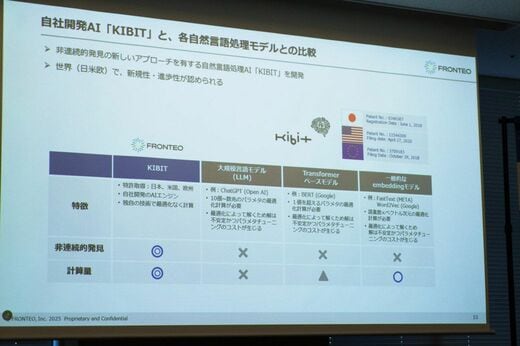 FRONTEOが開発するKIBITはLLMとは違う独自の動作原理を持つAIエンジンだ(筆者撮影)