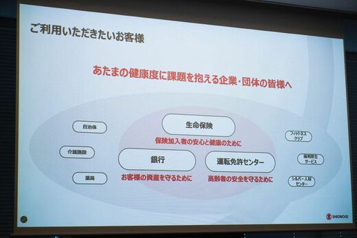 すでに複数の保険会社と協議中で、将来的には自治体、介護施設、薬局、ドラッグストアの健康カウンターなどでの活用も検討されている。