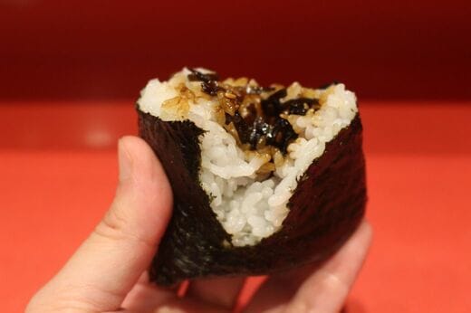 一口かじると、まず驚くのはその食感だ。海苔はしっとりとしており、噛むとうっすらとした歯ごたえがある。しかし本当の感動はその後に待っている。中のご飯がふわふわと口の中でほどけていくのだ。