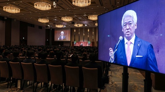 そのあとに新入社員代表の学生に内定証書が授与され、続いて子会社ベイカレント・コンサルティング社長の則武譲二常務執行役員、子会社ベイカレント・テクノロジー社長の山際龍太常務執行役員が具体的なプロジェクトの動向などについて言及し、会は締めくくられた。