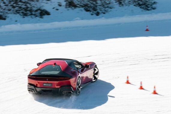 「フェラーリで雪上を思いきりドライブするのは、初めての経験。性能の高さがわかって、安心感が増しました」
