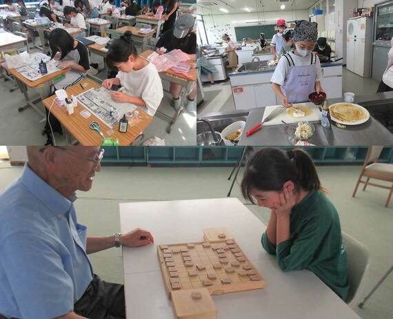 6年生は毎年「アートマイル国際協働学習」に取り組み、海外の学校とオンライン上で「貧困」や「環境」といった共通課題について学び合い、壁画サイズの作品を共同制作する。この作品は「最後の学習」(卒業式)で披露され、下級生は6年生になってこの学習に取り組むことを楽しみにしているという。