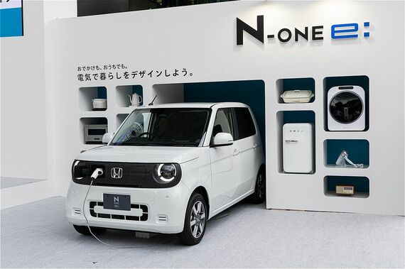 さらにN-ONE e:では、これもN-VAN e:と同様、外部給電機能も搭載する。アウトドアのレジャー用途や災害時などで、オプションの「ホンダ パワーサプライコネクター(Honda Power Supply Connector)」を使用すると、各種家電の電源としてクルマが機能する。ホンダ パワーサプライコネクターをフロントグリル右の普通充電用ポートに差し込むことで、AC100V/最大出力1500Wの外部給電が可能になり、ホットプレートや電気ケトルなどの家電をアウトドアや災害時に使うことができる。