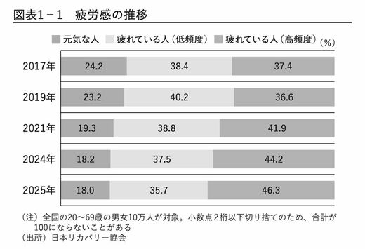だが、そうした数字より、むしろ私たちにとっては“実感”こそが気になるところかもしれない。日常生活において、人も自分も「疲れているんだなあ」と思わざるを得ないことに直面する機会は少なくないということだ。