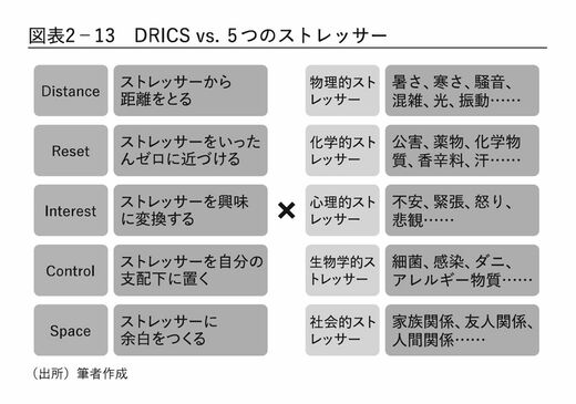つまりDRICS理論とは、これら5つの方法を、上記5つのストレッサーにぶつけることで疲労を抑制していこうという発想なのである。