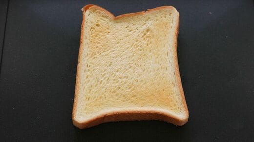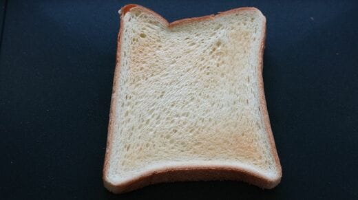 食パンをトーストモードで焼いてみた。トーストモードは素早く庫内の温度を上げ、マイクロ波でグリルプレートを高温にし、表裏から加熱して食パンを焼くモードだ。今回は5分加熱してみた(レシピでは3~5分推奨)。