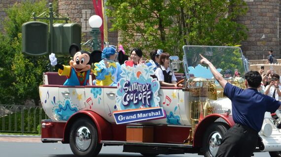 7月1日朝、青空が広がった東京ディズニーランド(TDL)。人気アーティスト「Mrs. GREEN APPLE」が担当したテーマソングが流れる中、3人のメンバーやミッキーマウスらがオープンカーに乗ってサプライズで登場すると、沿道に集まった人々は一斉にカメラのシャッターを切った。
