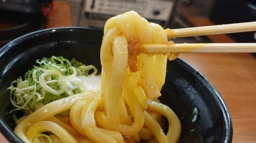 「くら寿司」の極太麺をじっくりと試食した限り、釜揚げ特有のモチモチとした食感や、小麦粉の旨みがしっかりと味わえる逸品であった。手で引っ張ると2~3割は伸びるほどに弾力があり、数本の麺を10分ほど置いて食べても、まだ食感が残っている。この麵は「寿司→うどん→寿司→うどん」といった順番で食べることもある回転寿司屋ならではの「時間が経っても美味しい」という特徴を持っているようだ。